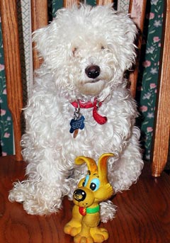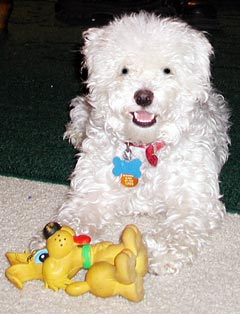 Meet Charlie Brown, the newest member of the family. He is a male Bichon Frise.